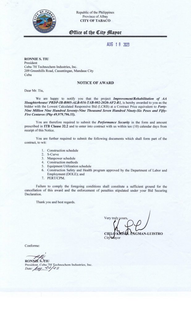 Notice of Award-Cebu 7H Technochem Industries, Inc.Download